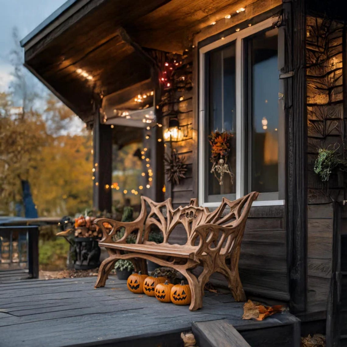 🎃Farmhouse Live Edge Outdoor Bench – Handmade Solid Wood Rustic Garden Bench, Country Style Patio Furniture, Halloween Porch Decor